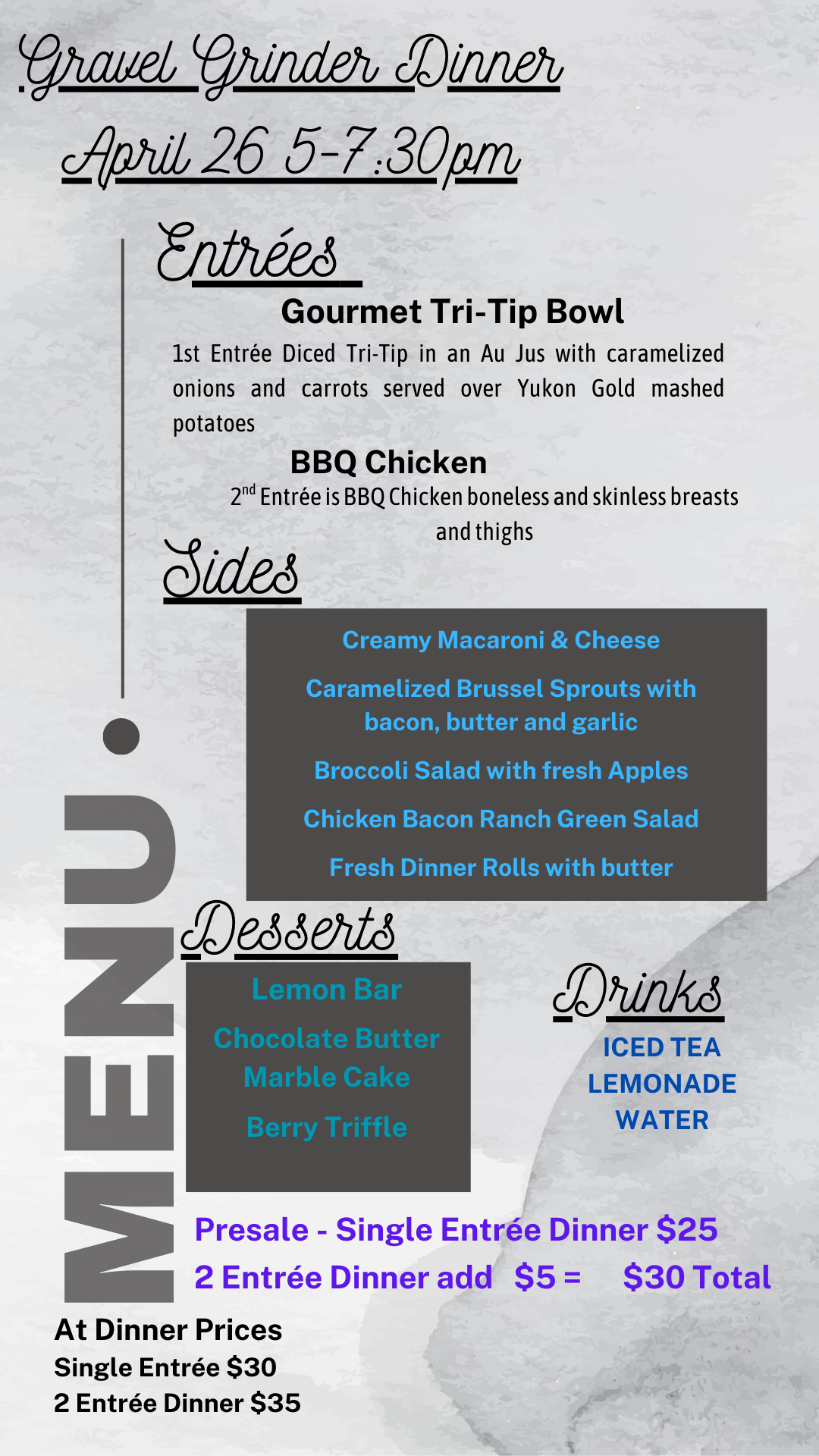 The Ranger Pride Education Foundation will be back again to do the pre-race fundraiser feed. Tri-tip, vegetarian options, and all the fixings. See the menu here.